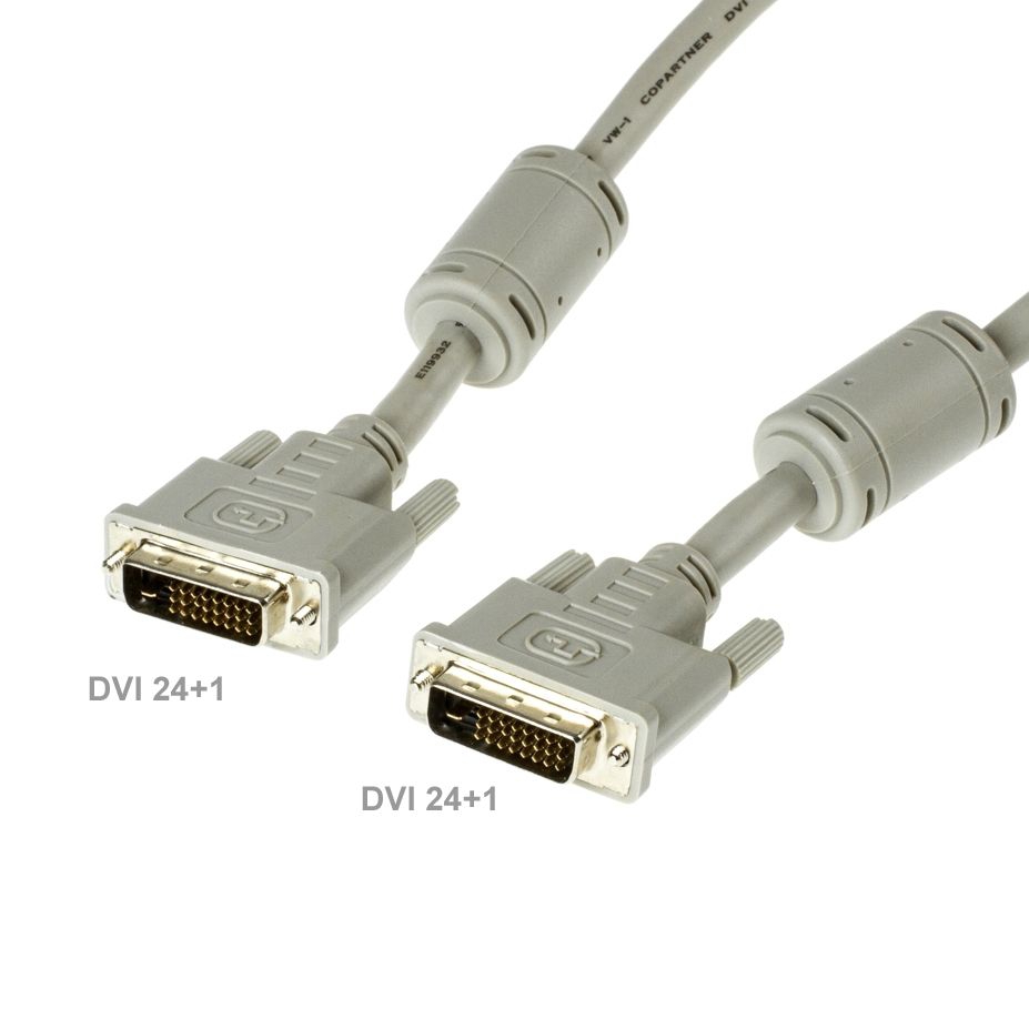Câble DVI 24+1 double LINK, très court: 50cm, 2x prise DVI 24+1 mâle (uniquement digital), double blindage, pour écran digital (DUAL-LINK, DVI-D), couleur: grise