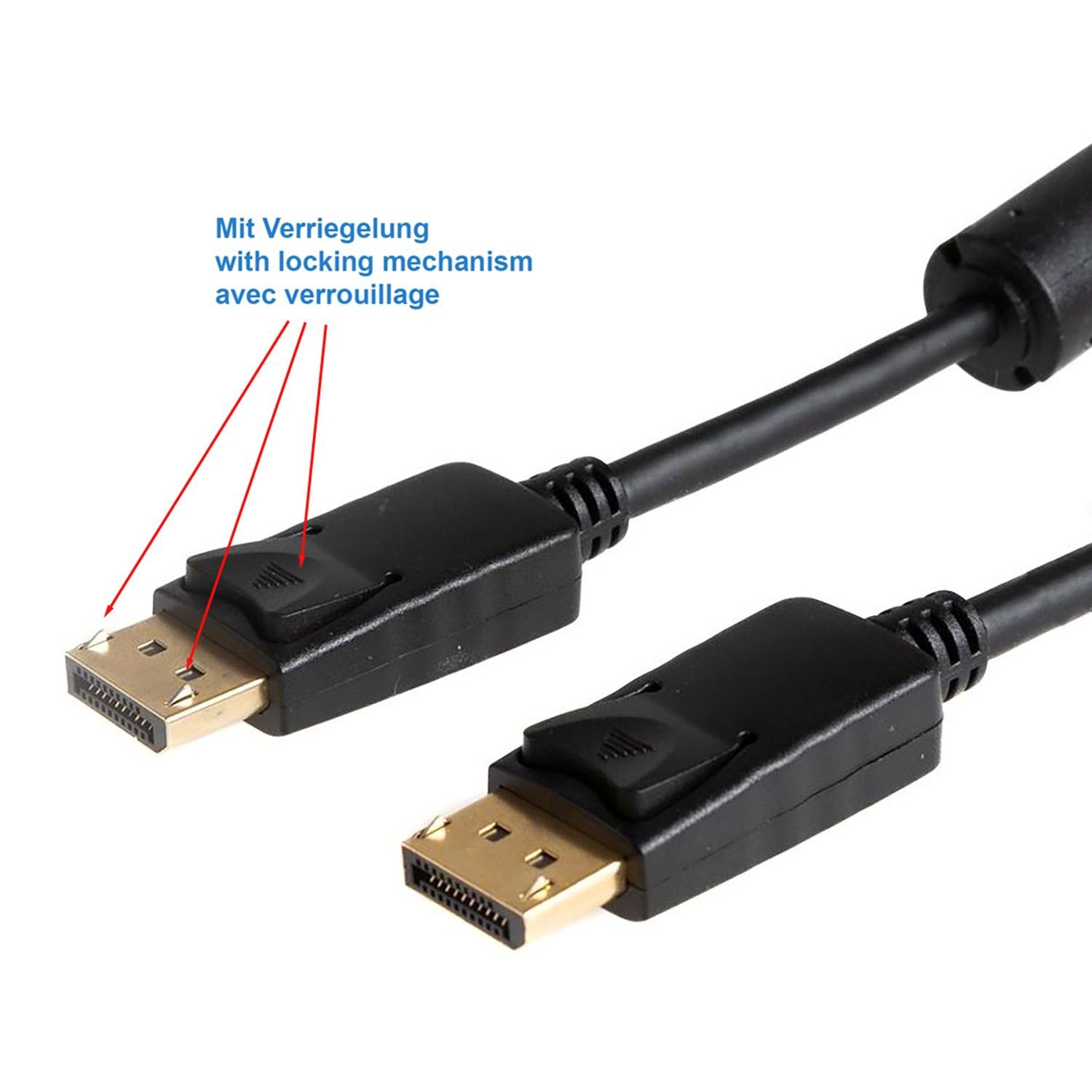 Câble DisplayPort™ 1.2 avec deux noyaux de ferrite pour une qualité de signal optimale, câble PREMIUM, 4K, max. Ultra HD (3840 x 2160), 1m