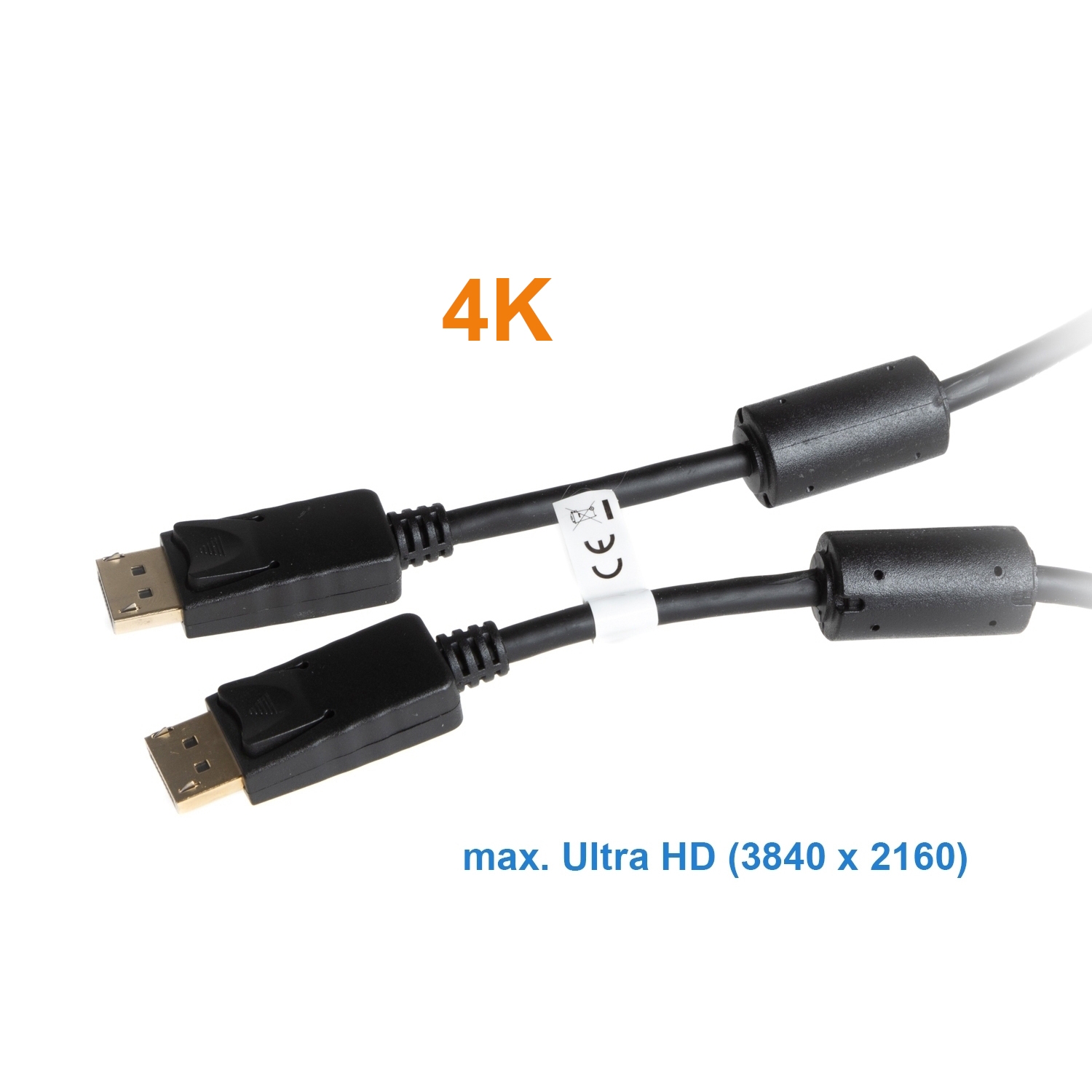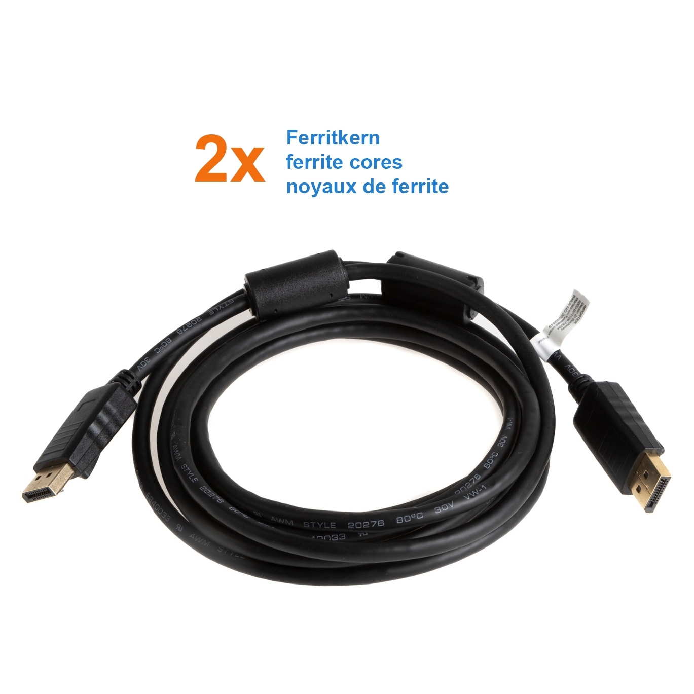 Câble DisplayPort™ 1.2 avec deux noyaux de ferrite pour une qualité de signal optimale, câble PREMIUM, 4K, max. Ultra HD (3840 x 2160), 2m