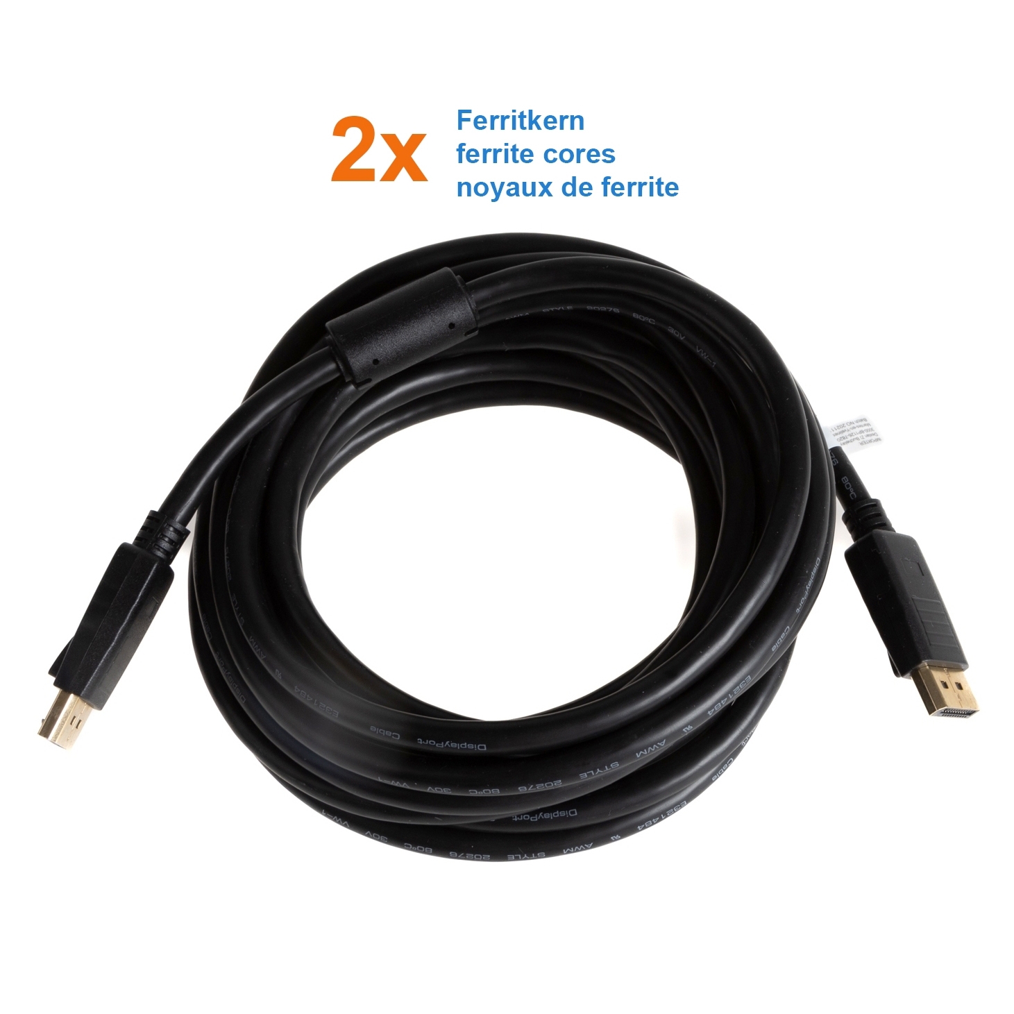 Câble DisplayPort™ 1.2 avec deux noyaux de ferrite pour une qualité de signal optimale, câble PREMIUM, 4K, max. Ultra HD (3840 x 2160), 5m
