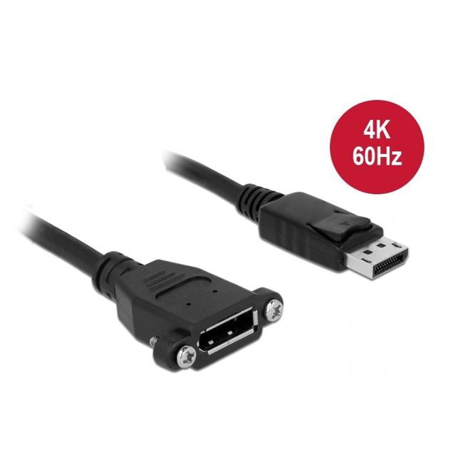Câble / rallonge DisplayPort pour montage sur panneau, 1m, DisplayPort femelle avec 2 vis vers DisplayPort mâle, compatible Displayport 1.2, 4k 60Hz, distance entre les vis 27mm