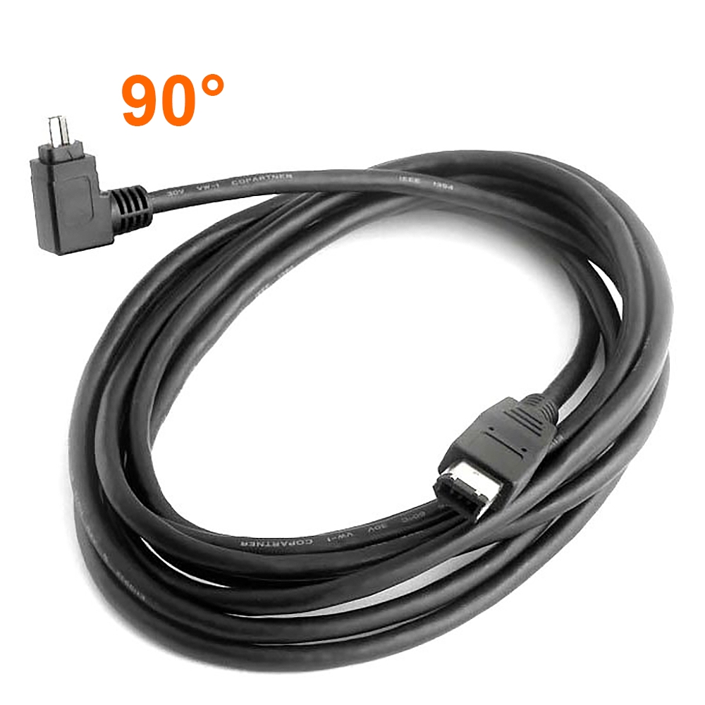 Câble FireWire 4/6 coudé, 3m, connectique: prise FireWire 4 broches mâle (coudée 90°) vers prise FireWire 6 broches mâle (pas coudée), 400 MBit/s, compatibilité: Firewire 400, IEEE-1394a, S400, i.Link, DV, couleur: noir