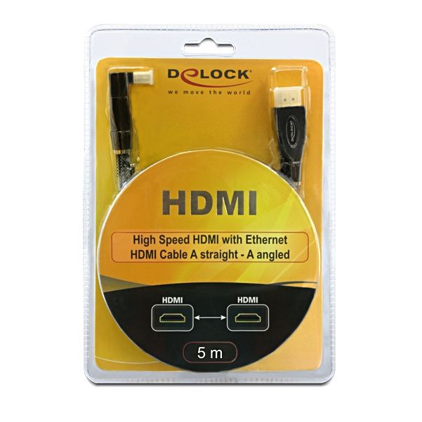 Câble HDMI High Speed avec Ethernet, qualité PREMIUM, 90° coudé, 5m