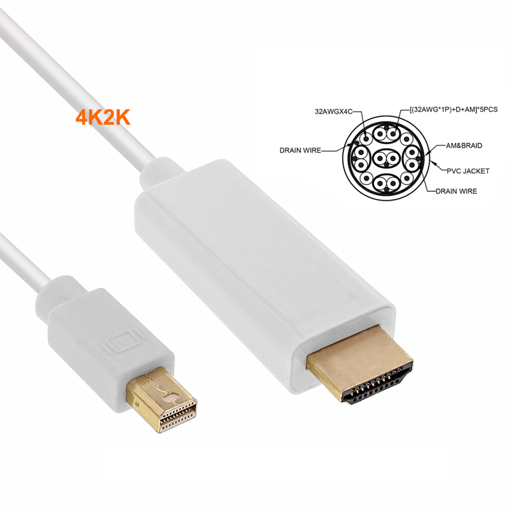 Câble Mini DisplayPort vers HDMI, 4K2K, avec audio, 2m .