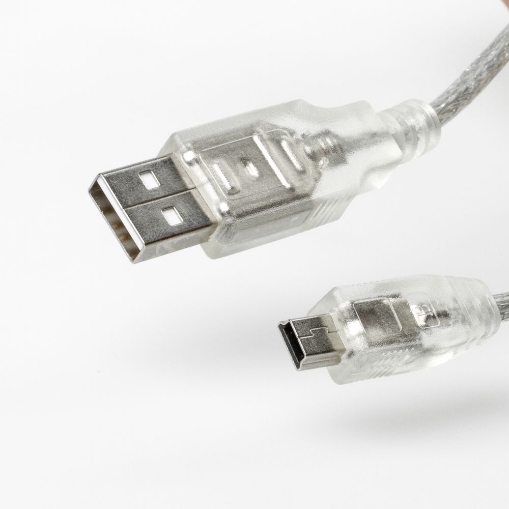 Câble USB MINI B, très court 20cm, Hi-Speed USB 2.0, connectique: prise USB A mâle, prise USB MINI B à 5 broches mâle, couleur: argent (tranparente)