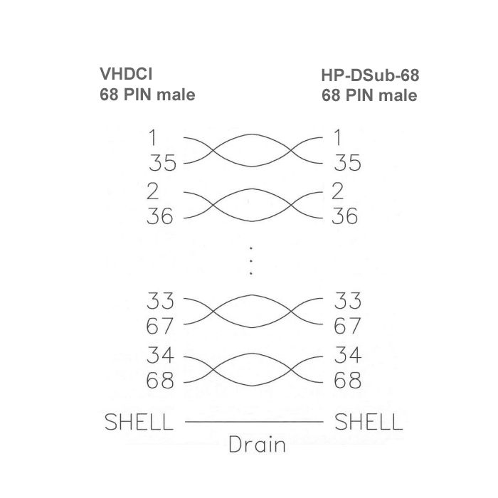 Câble SCSI avec VHDCI (mâle) vers HD-68 (HP-DSub-68m, mâle), 5m, câble UL de matériel haute qualité, connecteurs métalliques, 68 broches (1-vers-1), p.ex. pour les cartes d'acquisition de données ou LVD 320 Mbps / WIDE-SCSI