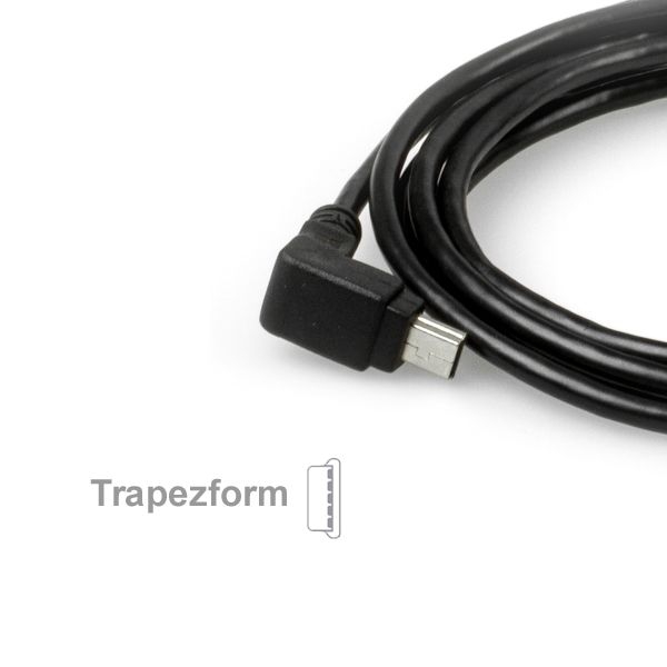 - Connexion 2 : prise USB 2.0 MINI B coudée à 90° vers le bas (mâle)
