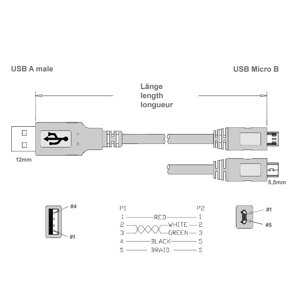 Câble USB 2.0 Micro B qualité PREMIUM, brins de cuivre AWG28/24, 2m