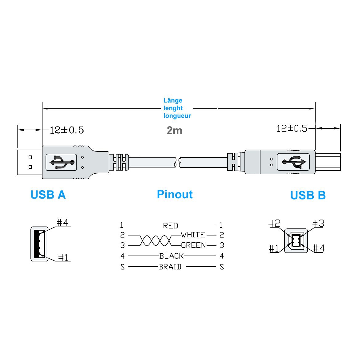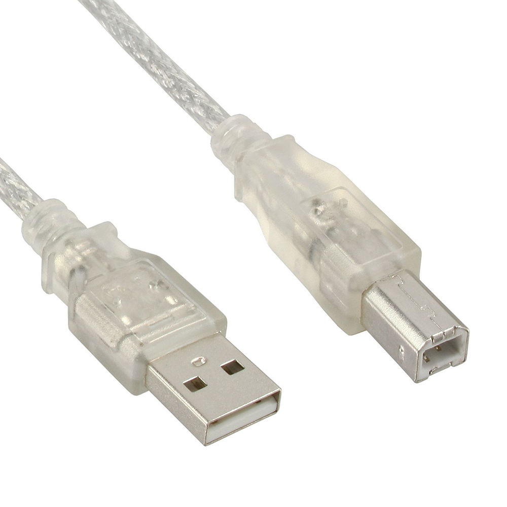 Câble USB, longueur 2 mètres, Hi-Speed USB 2.0 (cordon de haute qualité 28AWG1P / 24AWG2C), connectique: USB à 4 broches type A mâle - USB à 4 broches type B mâle, couleur: argent (transparent)