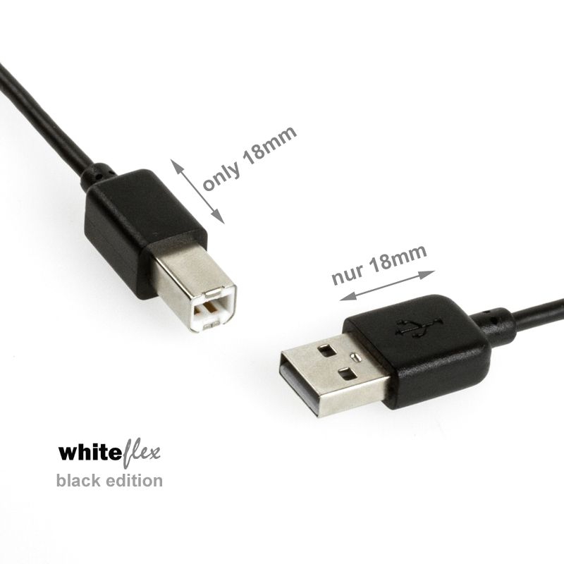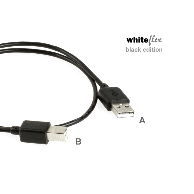Câble USB WHITEFLEX Black Edition, 1m, noir, pour Mac/PC, cordon très flexible, diamètre seulement 3mm, Hi-Speed USB 2.0, connectique: USB à 4 broches type A (mâle) - USB à 4 broches type B (mâle)