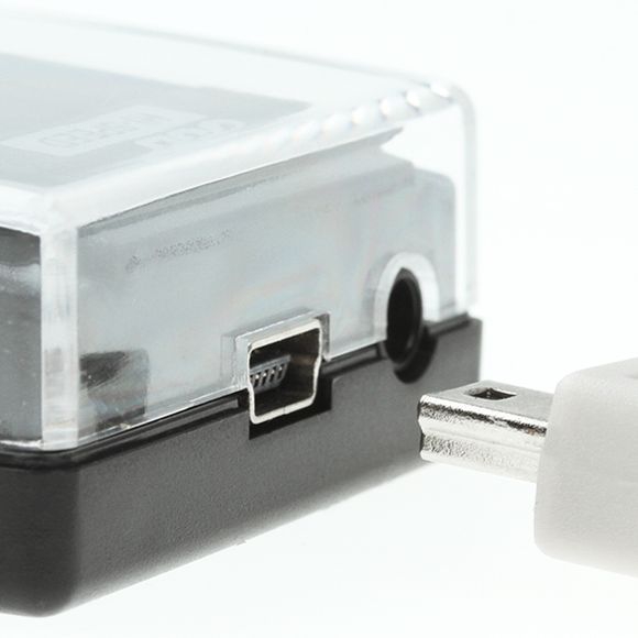 - connecteur 2 : USB 2.0 Mini B mâle (5 broches, petit connecteur pour périphérique)