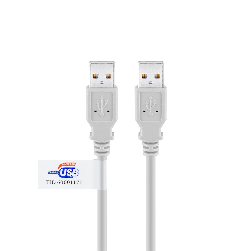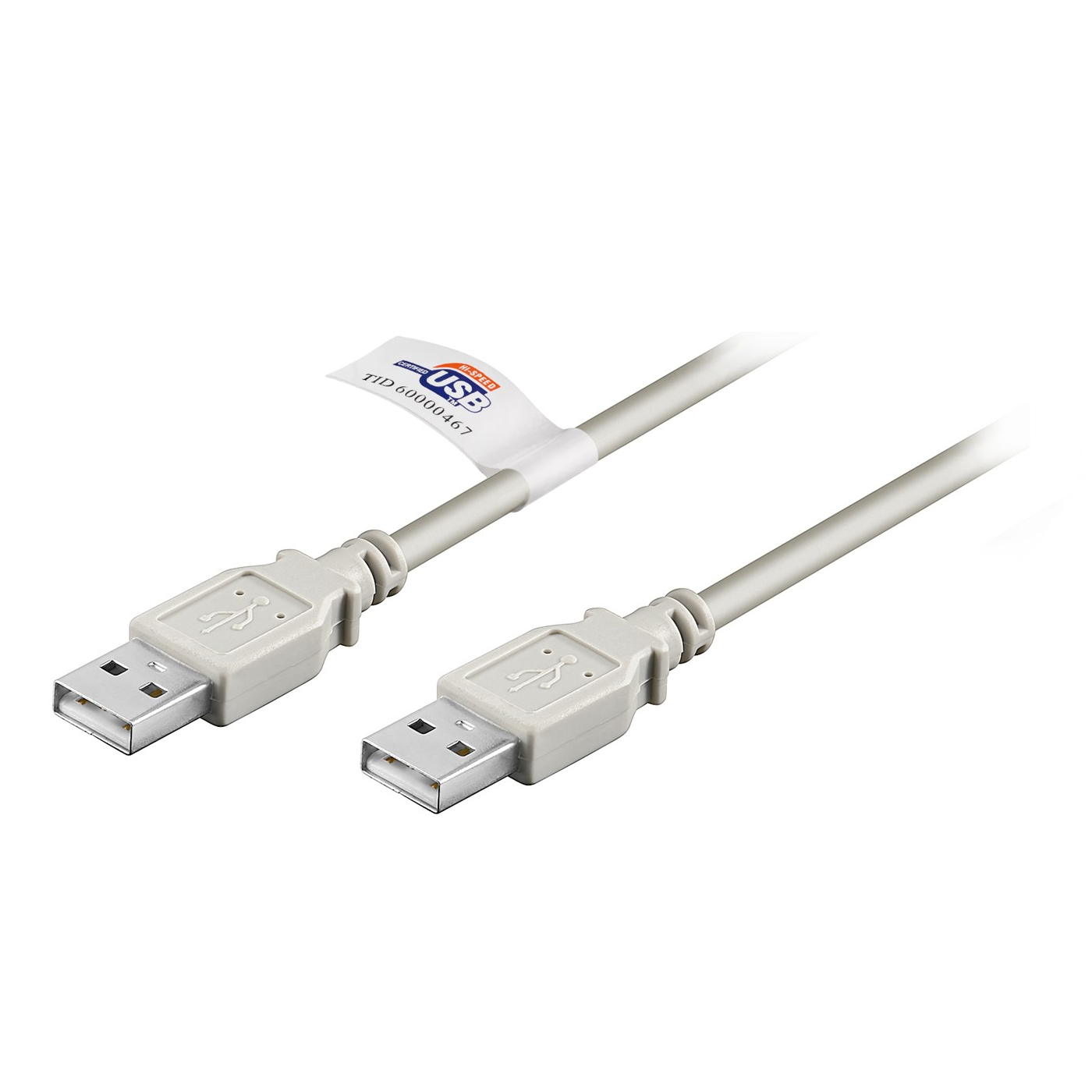 Câble USB 2.0 version AA avec certification (www.usb.org, TID no. 60000467), 3m, double blindage, AWG28/1P AWG24/2C, 2x fiche USB 2.0 A, max. 480 Mbps, gris