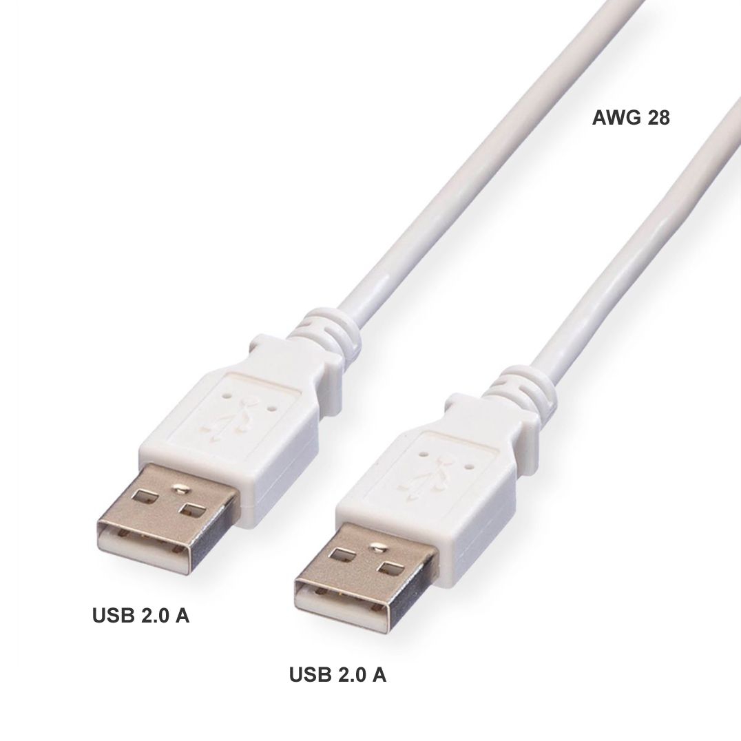 Câble USB spécial: 2x avec fiche USB A mâle, USB 2.0 (High Speed), blanc, longueur 80cm