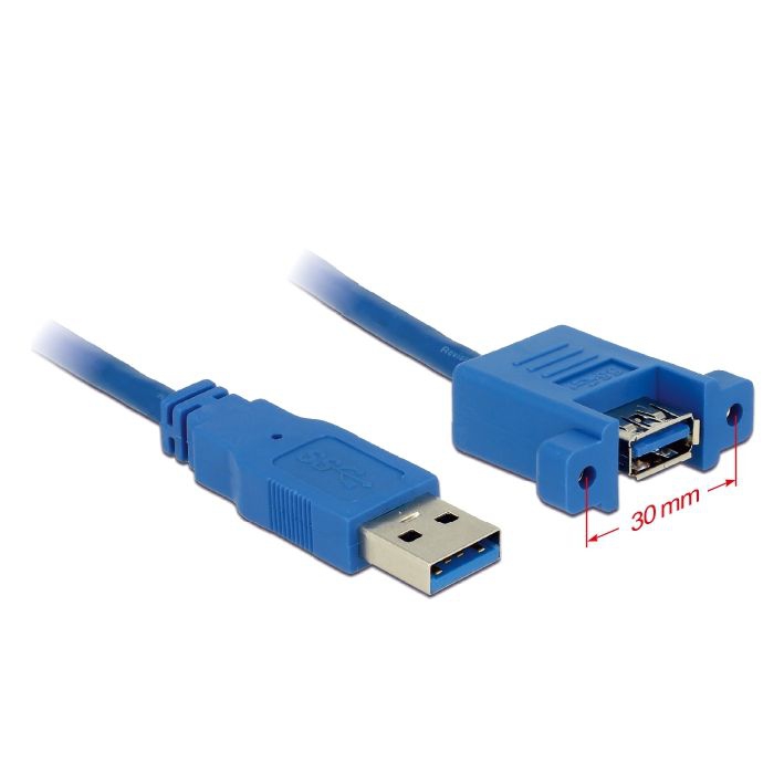 Câble USB 3.0 à visser RALLONGE DE MONTAGE Af/Am 1m (distance des vis 30mm) BLEU