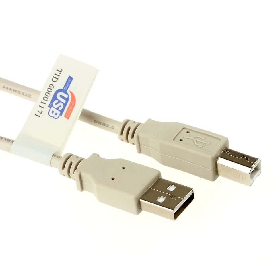 Câble USB 2.0, 3m, très haute qualité: certification TID 60001171 (www.usb.org), double blindage, AWG28/1P AWG24/2C, fiche USB A vers B, max. 480mbps High Speed, gris
