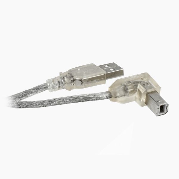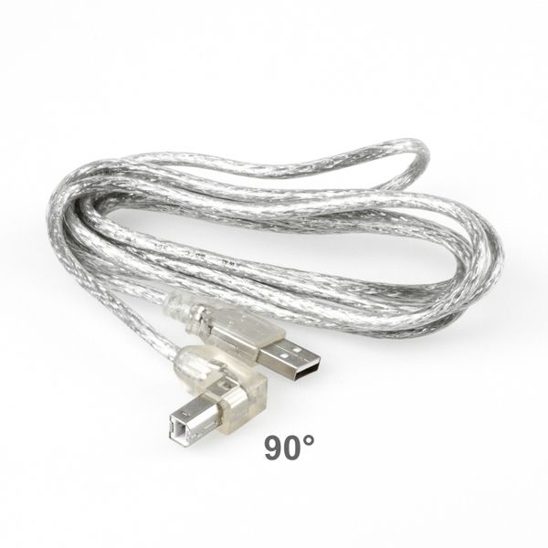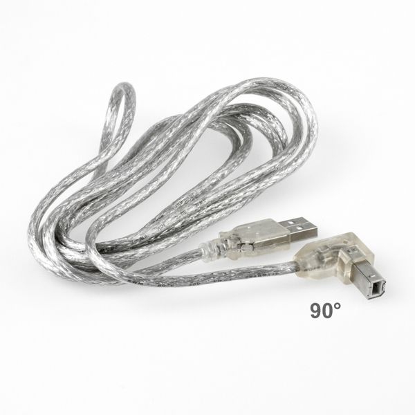 Câble USB AB - B coudé 90 VERS LE BAS 2m ARGENT