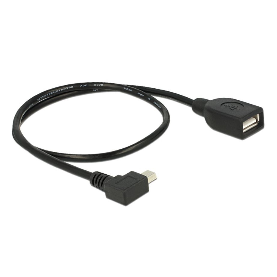 Câble USB Mini B 90° coudé à DROITE vers USB A femelle 50cm