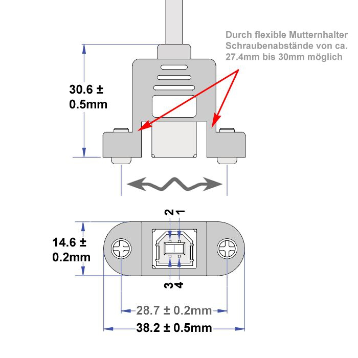 Câble USB à visser RALLONGE DE MONTAGE BB 50cm distance vis 28.7mm