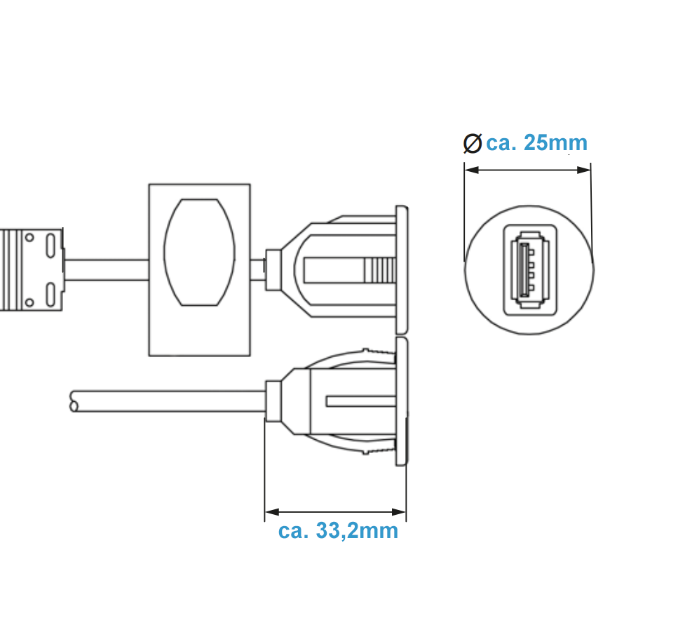 - USB 2.0 extension cable / mounting cable for round hole approx. 2cm