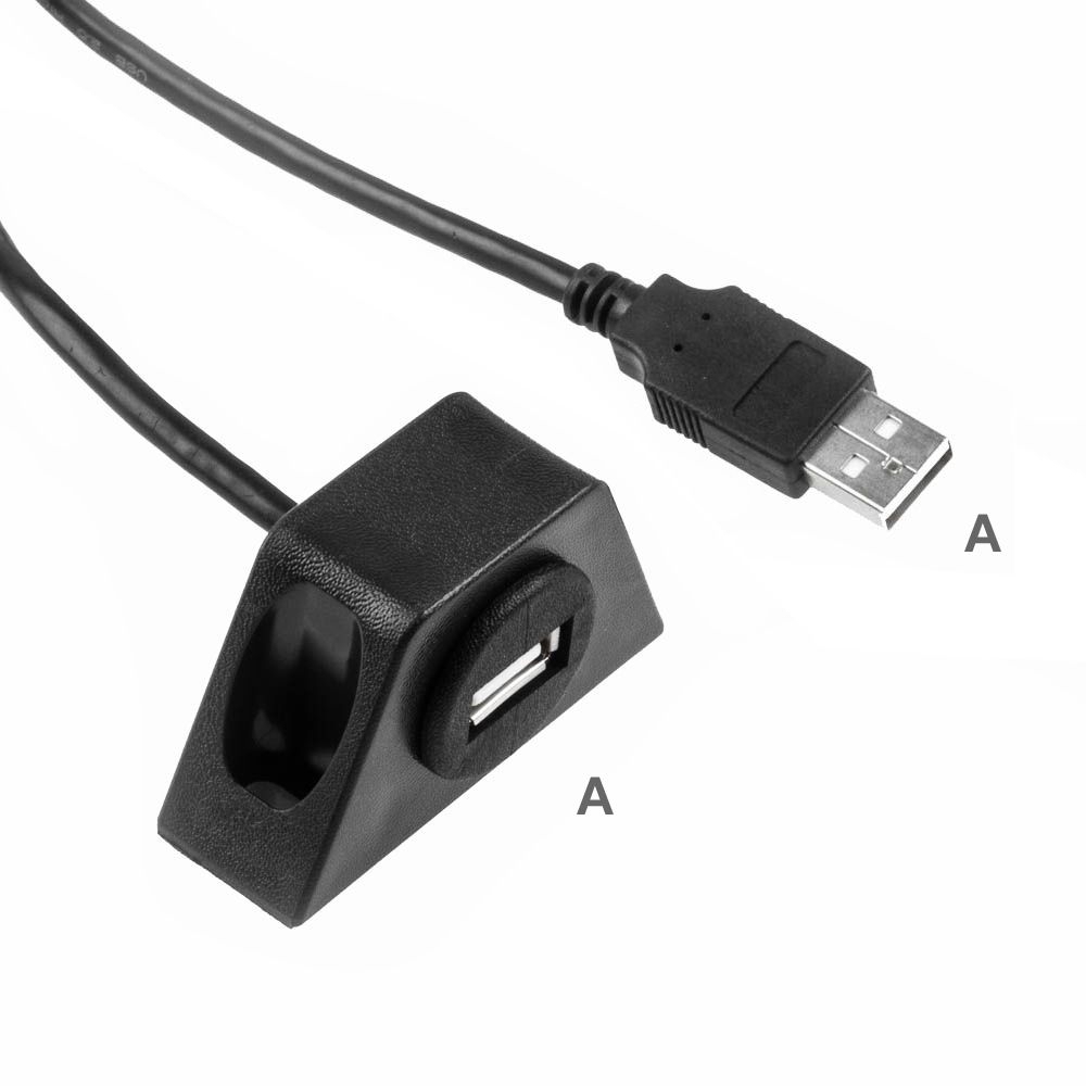 Câble USB de montage (pour trou rond avec diamètre de 2cm), longueur 120cm, prise USB A femelle (montage) - prise USB A mâle, compatible USB 2.0