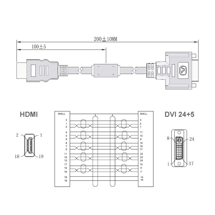Câble adaptateur HDMI mâle vers DVI-I femelle 24+5, 20cm