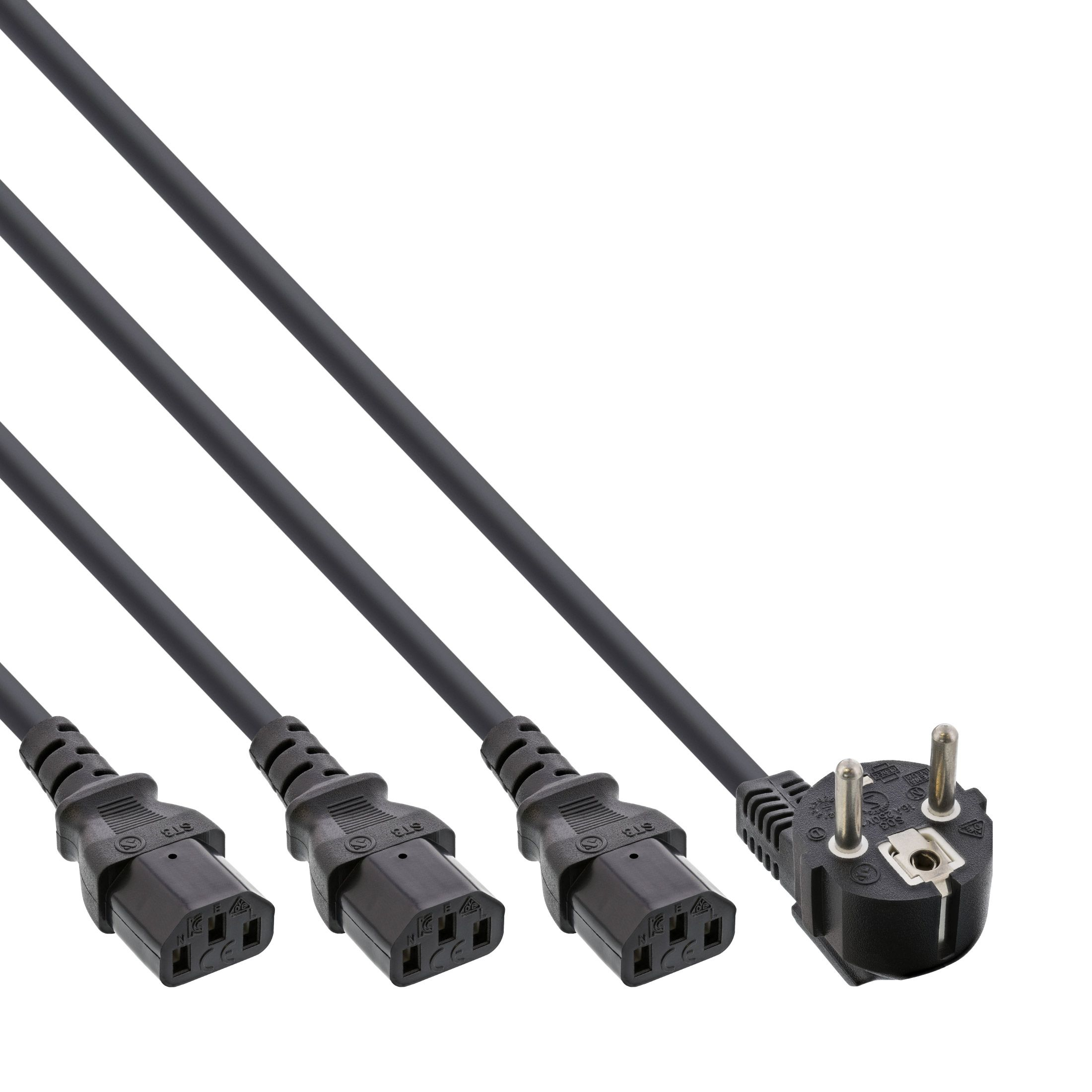 Câble d'alimentation en Y pour 3 PCs (60cm + 3x 120cm) 180cm, noir