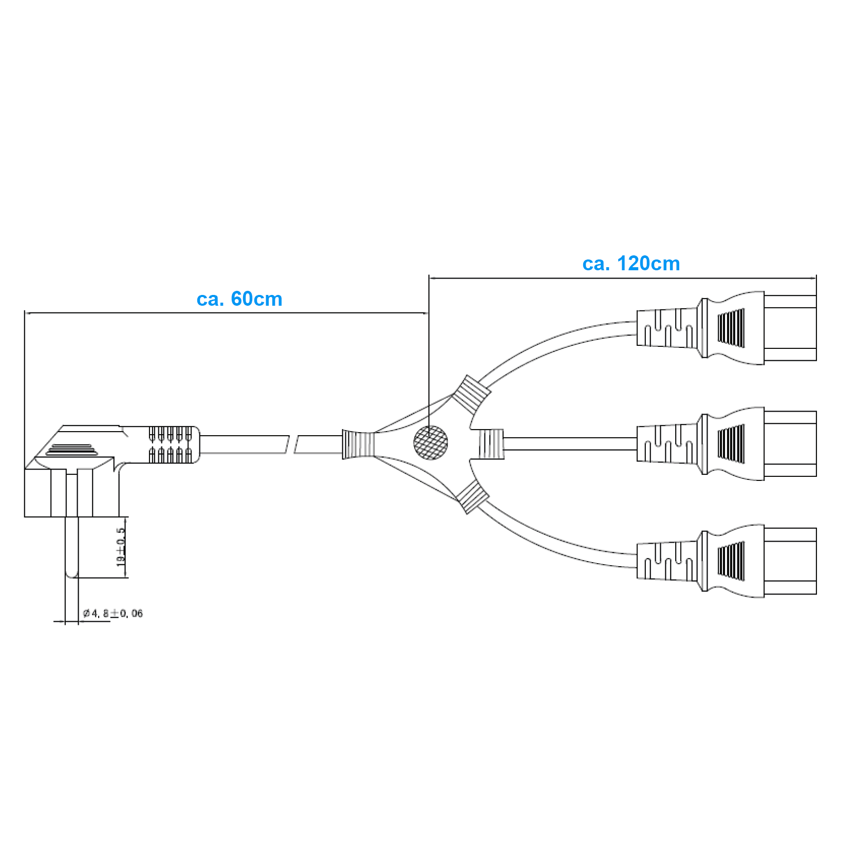 Câble d'alimentation en Y pour 3 PCs (60cm + 3x 120cm) 180cm