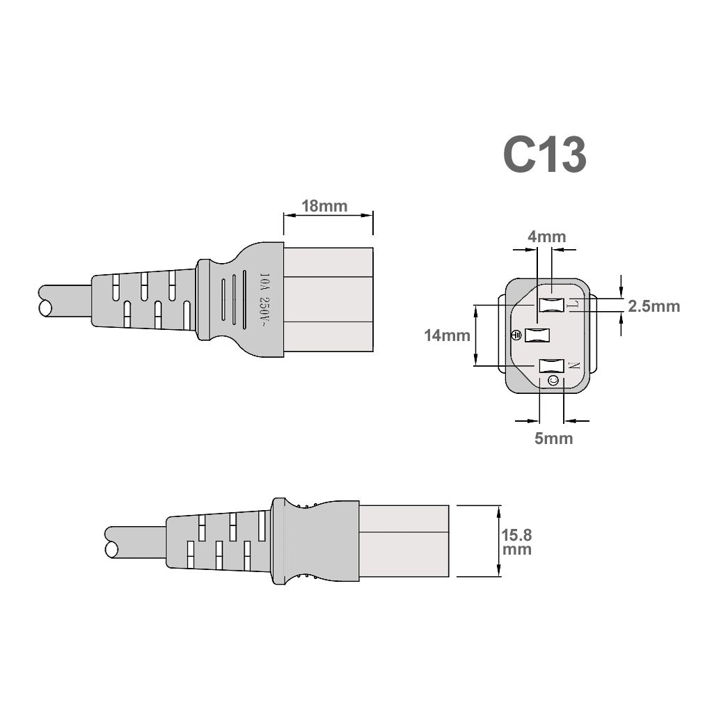 Câble d'alimentation secteur externe pour l'Afrique du Sud, fiche secteur africaine type M (3 pôles) vers C13 (3 pôles), env. 1.8m, 3G x 0,75mm², noir