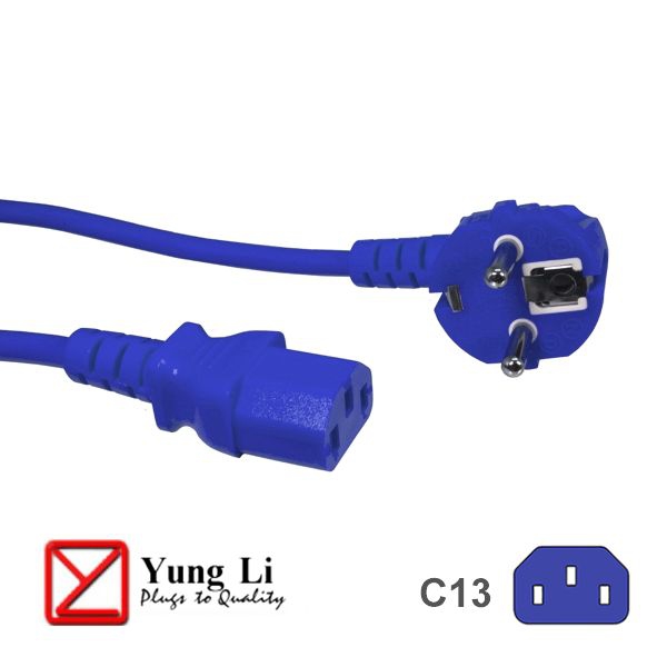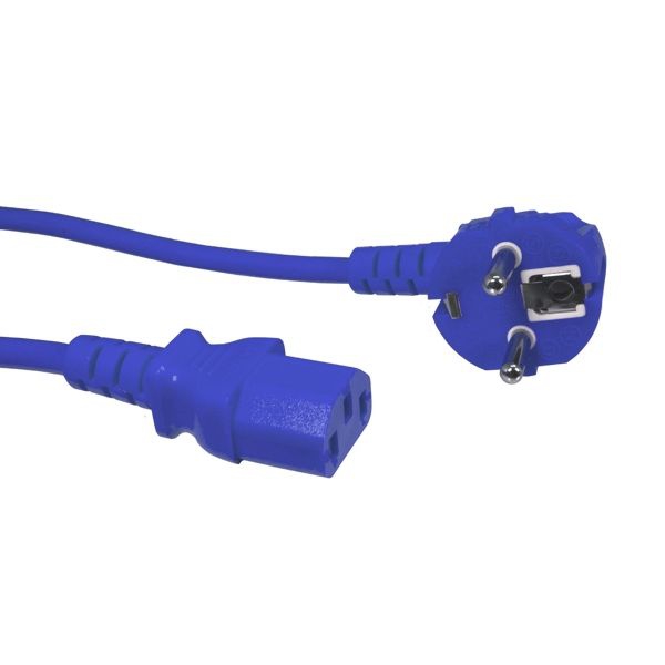 Câble d'alimentation secteur BLEU type EUROPE CEE 7/7 E+F 90° coudé vers C13 180cm