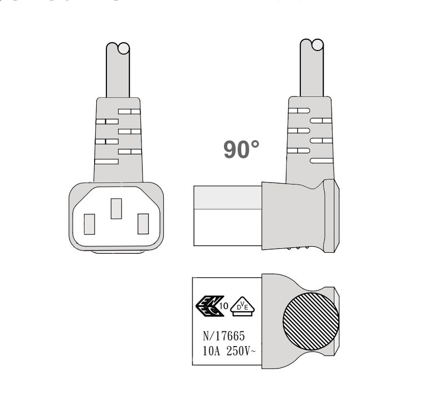 Câble d'alimentation secteur UK C13 coudée VERS LE HAUT 180cm
