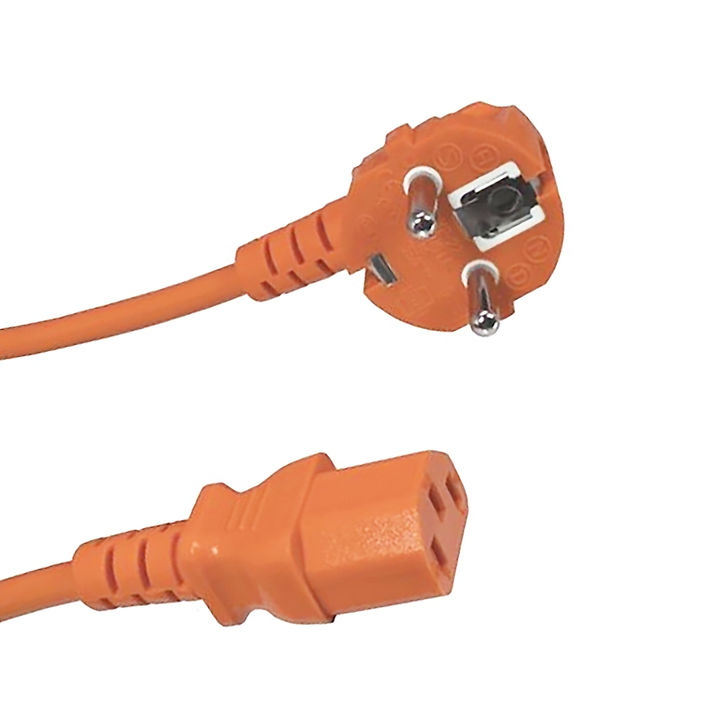 Câble d'alimentation secteur externe pour PC, orange, 2m, p. ex. pour France / Allemagne, prise CEE 7/7 E+F mâle (coude, 2 pôles + terre) - IEC femelle (type "Informatique"), 3G x 0,75mm²