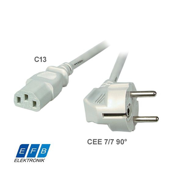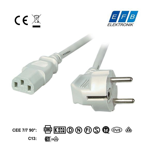 Câble d'alimentation secteur externe pour PC, 5m, p. ex. pour France / Allemagne, prise CEE 7/7 E+F mâle (coude, 2 pôles + terre) - IEC femelle (type "Informatique"), 3G x 1mm², gris