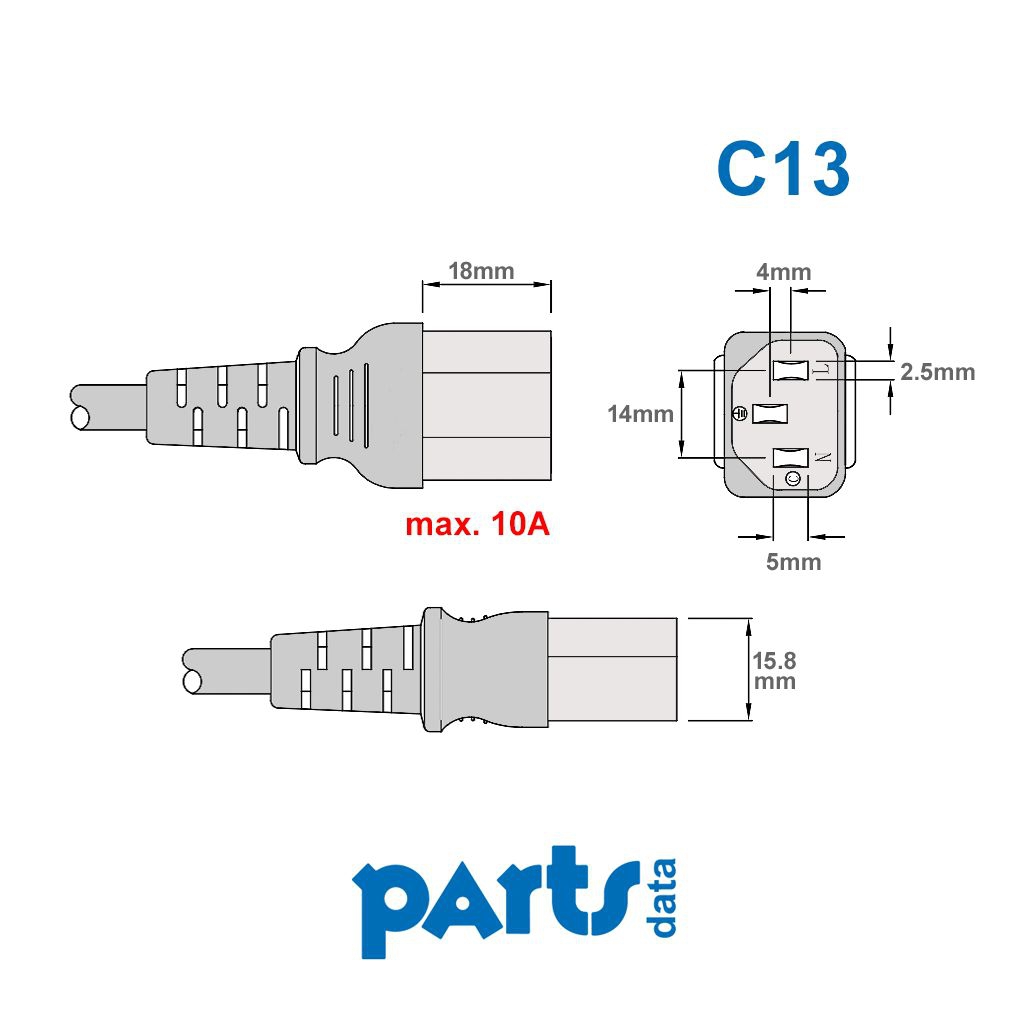 Câble d'alimentation secteur type EUROPE CEE 7/7 E+F 90° coudé vers C13 75cm