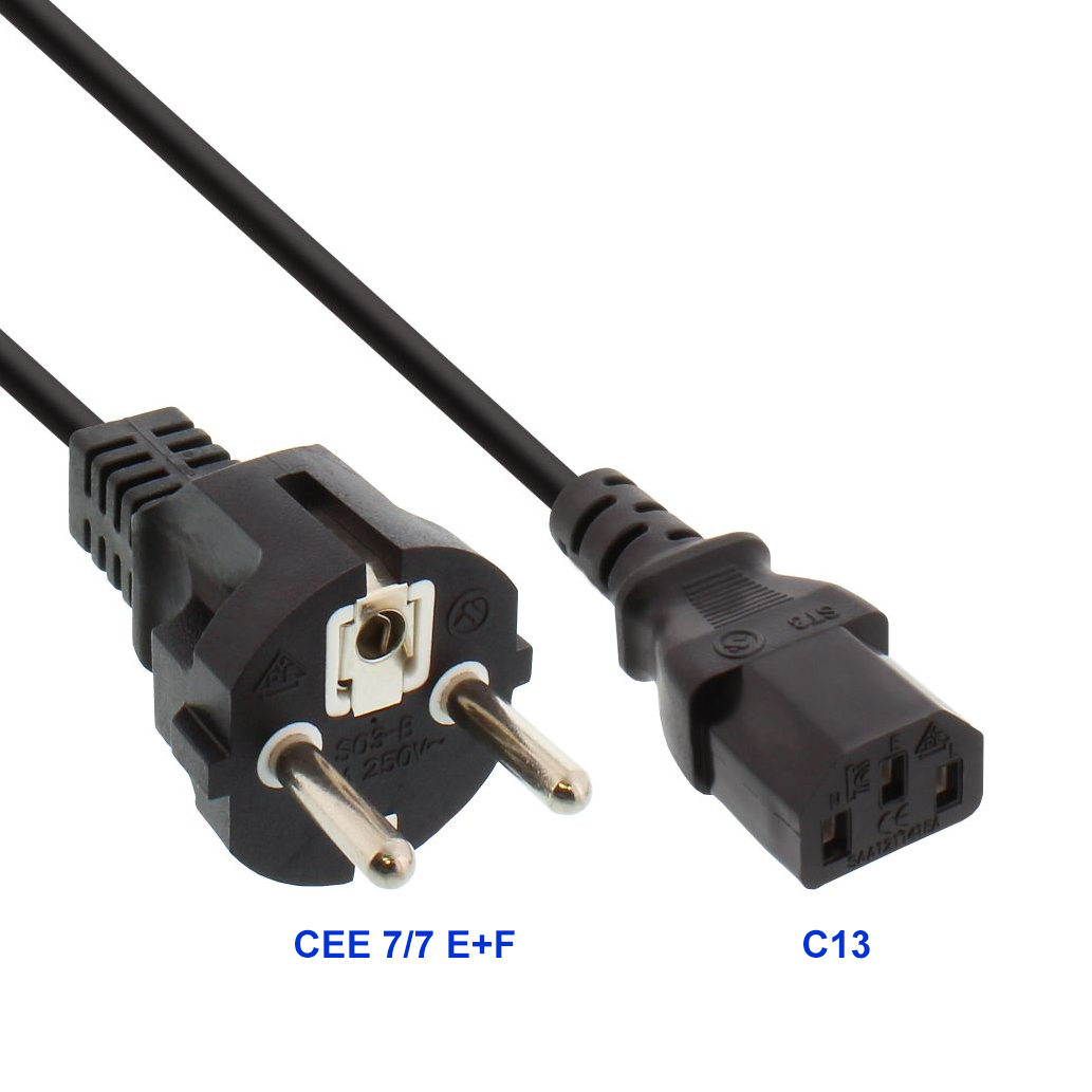 Câble d'alimentation secteur externe pour PC, 50cm, p. ex. pour France / Allemagne, prise CEE 7/7 E+F mâle (2 pôles + terre) - IEC femelle, type "Informatique" (CEE 7/7/IEC 60320 - C13), 3G x 0.75mm², noir