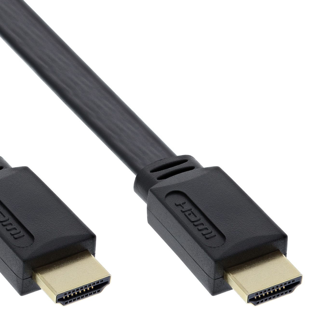 Câble plat HDMI pour une pose peu encombrante, connecteur HDMI 19 pôles (A) des deux côtés, transmission de signaux vidéo et audio (purement numériques), avec Ethernet, noir, 5m