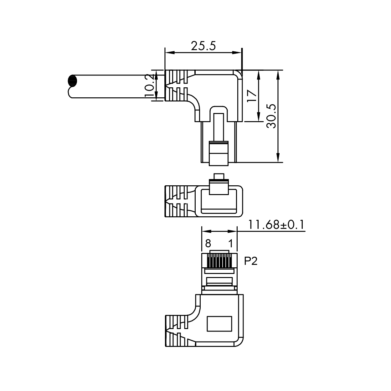 Câble réseau Cat.6A 1x RJ45 coudée VERS LA DROITE, 50cm