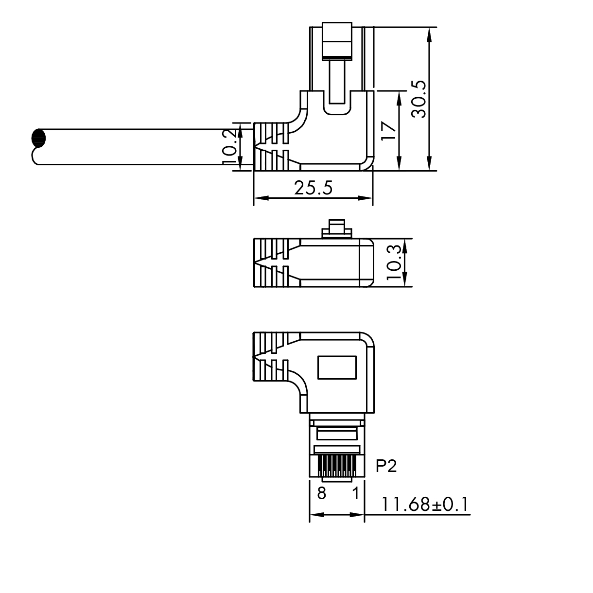 Câble réseau Cat.6A 1x RJ45 coudée VERS LA GAUCHE, 1m