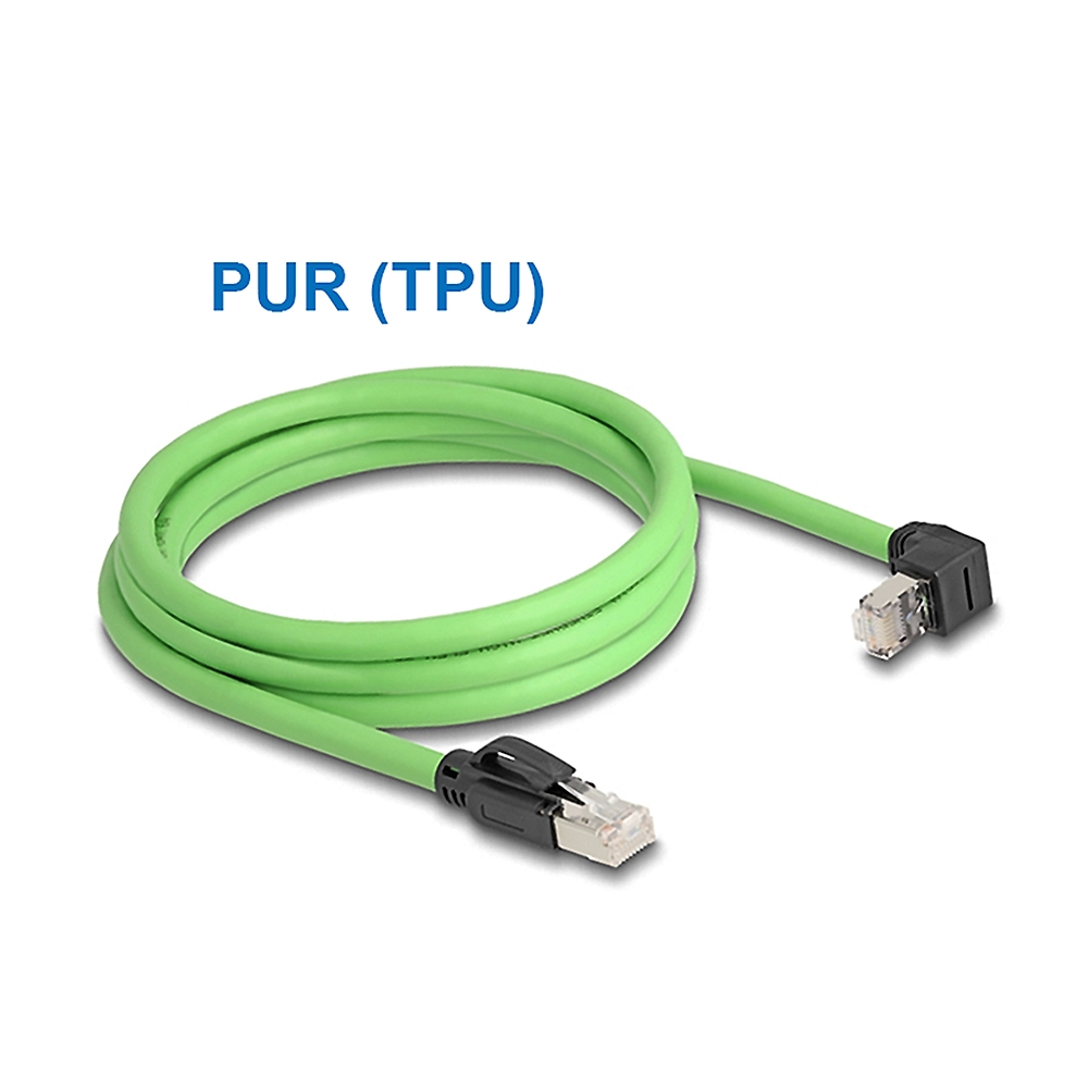 Câble réseau Cat.6A 1x RJ45 coudée VERS LE HAUT, PUR (TPU), convient pour les chaînes de traînage, 2m