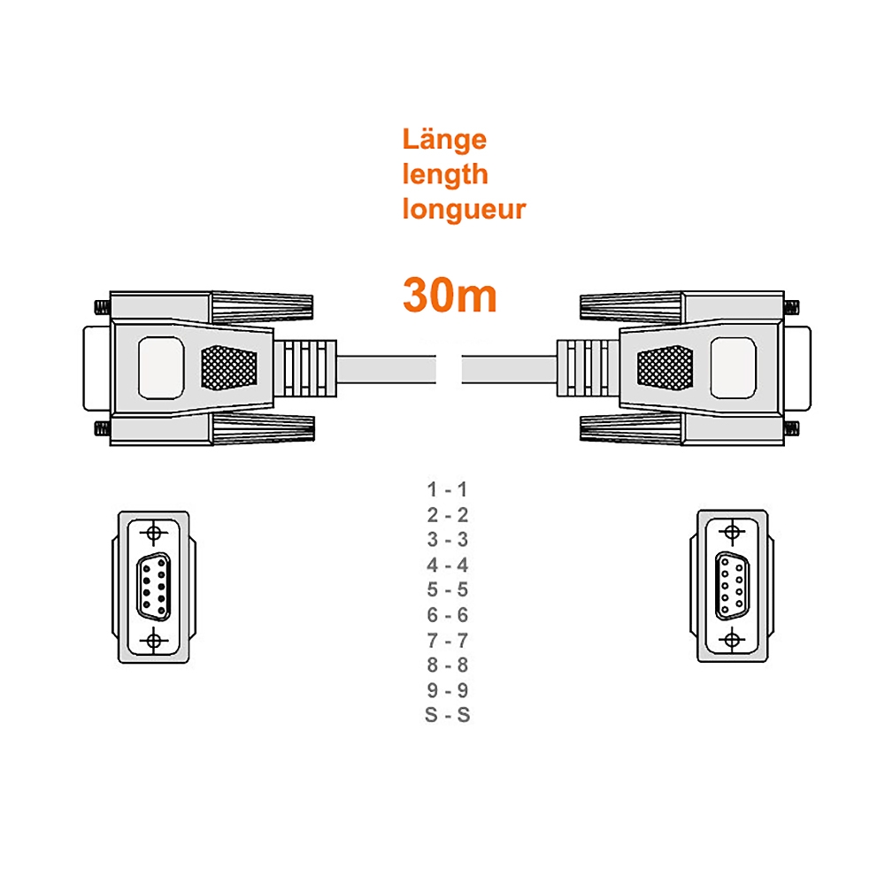 Câble série DB9 mâle vers DB9 femelle, 30m, p.ex. pour RS232