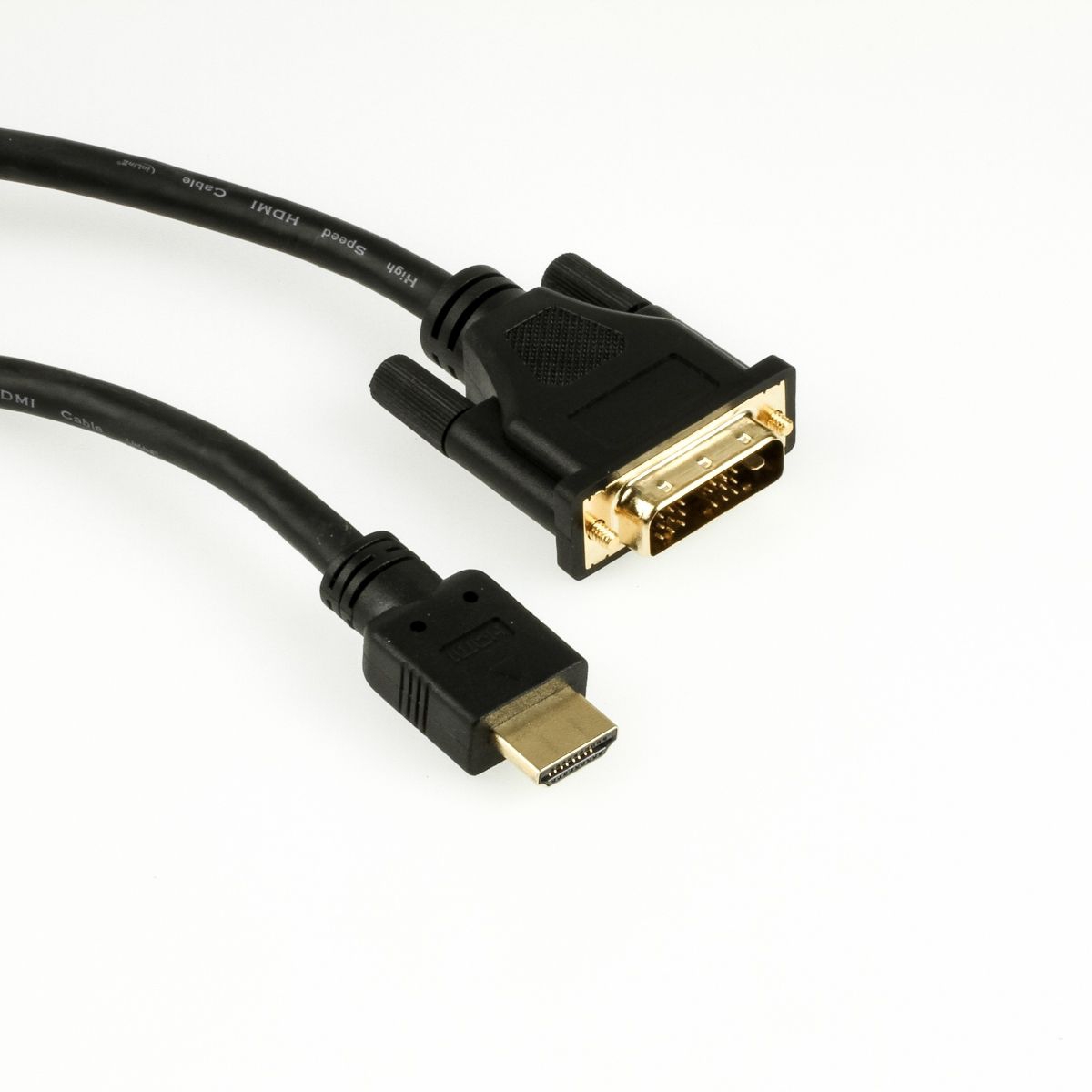 Câble vidéo numérique HDMI / DVI, longueur 5 mètres, connexion: fiche HDMI 19 points mâle vers fiche DVI-D 18+1 mâle, connecteurs dorés, haute qualité, double blindage, couleur: noir