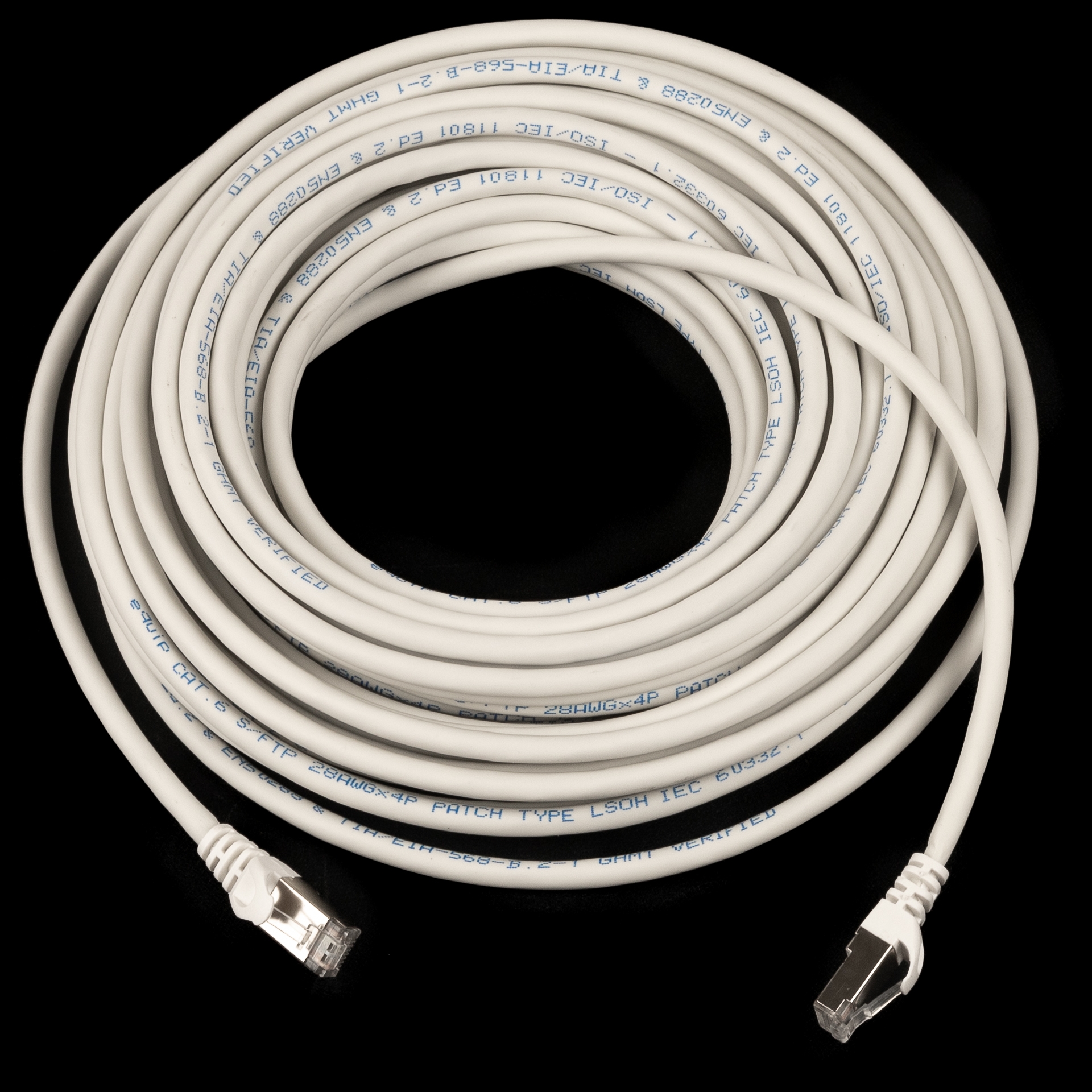 Câble de réseau Ethernet LAN, 15m, Cat.6, RJ45 mâle vers RJ45 mâle, S/FTP, double blindage, PIMF, couleur: blanche