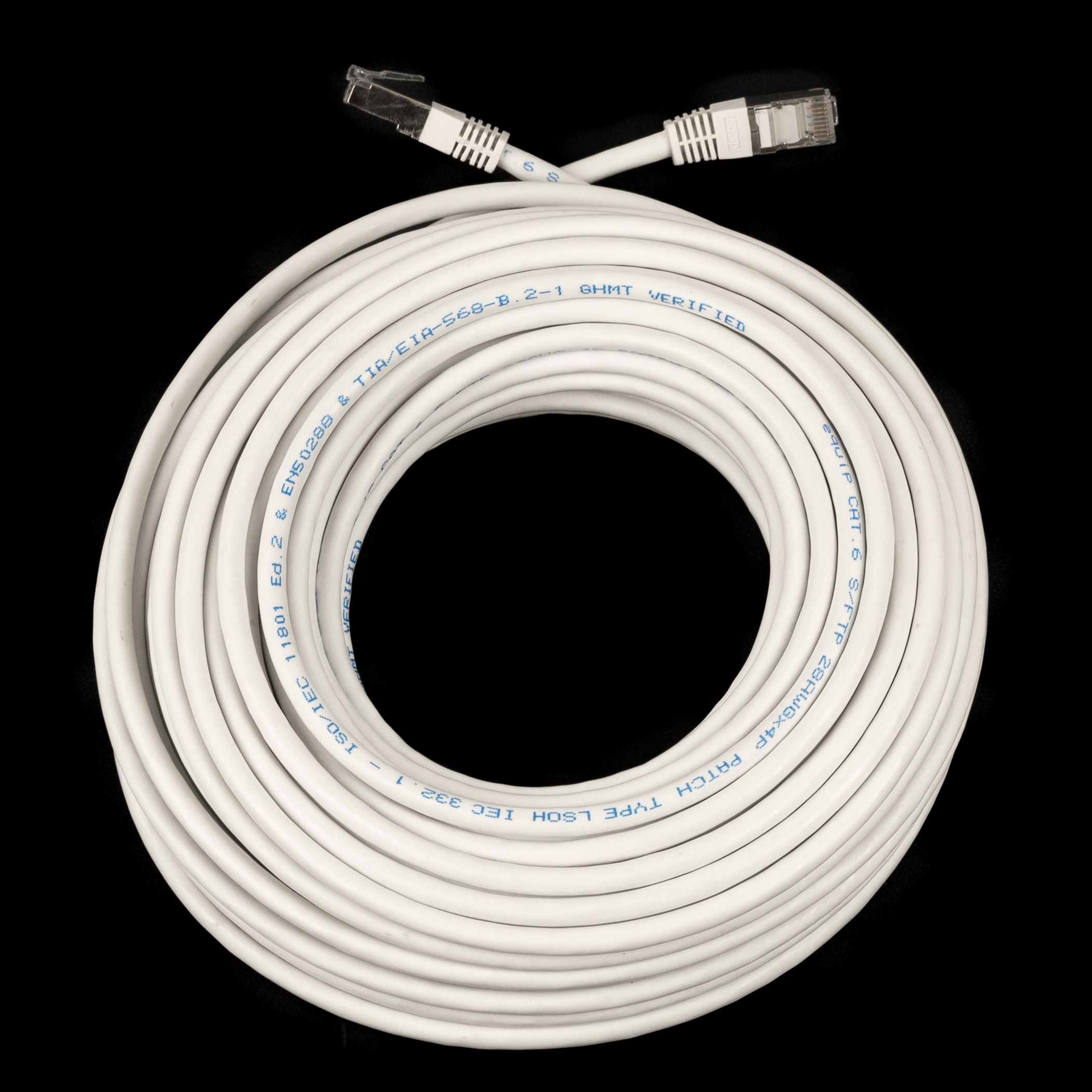 Câble de réseau Ethernet LAN, 20m, Cat.6, RJ45 mâle vers RJ45 mâle, S/FTP, double blindage, PIMF, couleur: blanche