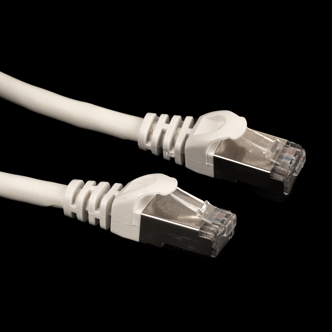 Câble de réseau Ethernet LAN, 25cm, Cat.6, RJ45 mâle vers RJ45 mâle, S/FTP, double blindage, PIMF, couleur: blanche