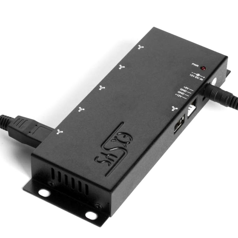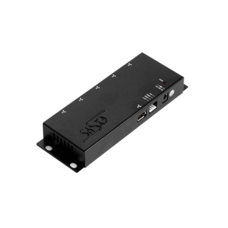Concentrateur (HUB) Firewire 400 avec 6 ports (1 in / 5 out), version industrielle (boîtier métallique noir), compatible IEEE1394a, avec alimentation externe 12V et câble FireWire 6/6, noir