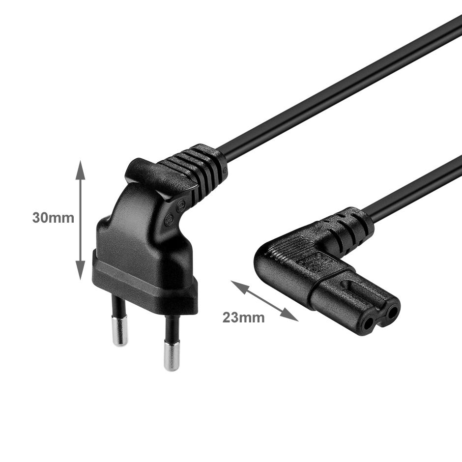 Câble d'alimentation secteur bi polaire (fig. 8), 90° COUDÉE sur les deux côtés, 220V, 5m, noir, p.ex. pour portable/radio etc.