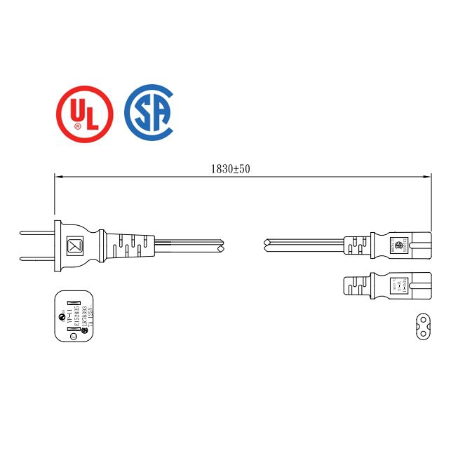 Cordon électrique secteur bipolaire pour les ÉTATS-UNIS & CANADA 180cm