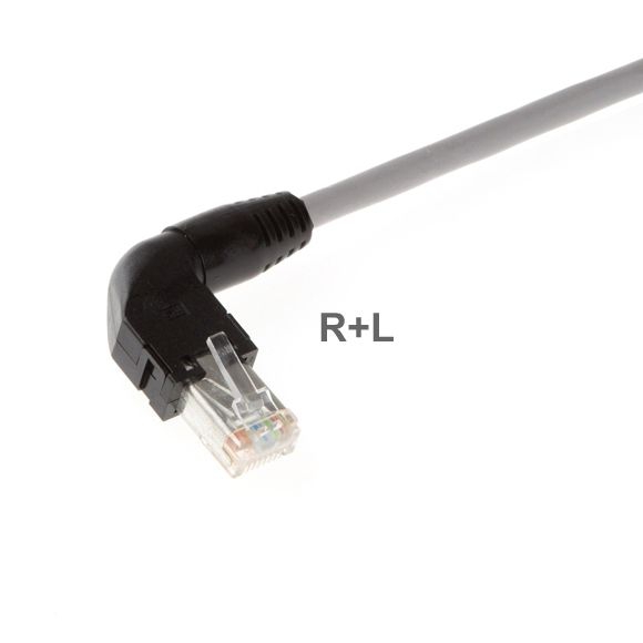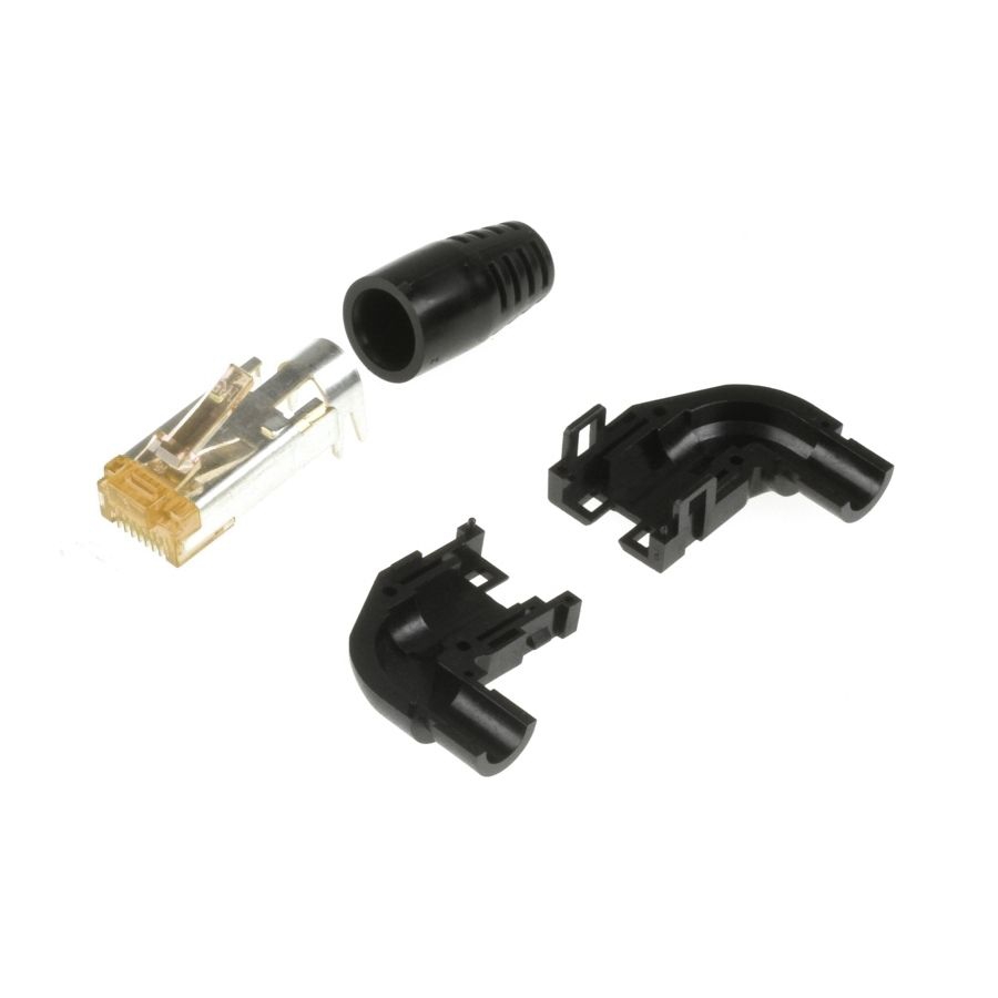 Prise réseau RJ-45 pour la fabrication des câbles réseau ethernet, 90° coudée à droite ou à gauche, Cat.6 male, avec outil pour embobiner, protection plier (antikink), noir, pour Cat.6A/Cat.6/Cat.5e
