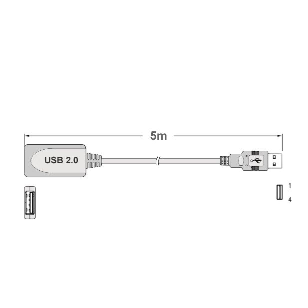 Rallonge USB 2.0 active avec amplification, longueur 5M (cable d'extension amplificateur/répéteur)