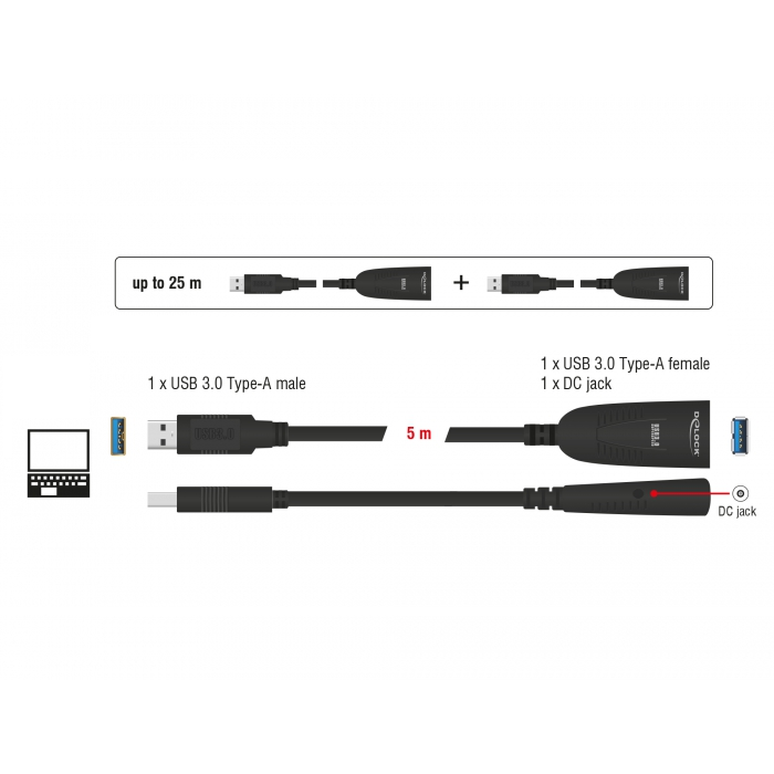 Rallonge USB 3.0 active avec port pour 5V, 5m