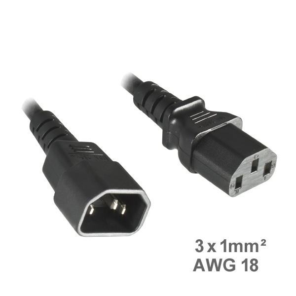 Rallonge d'alimentation secteur C13-C14 3x1mm² multi-approbations 2m